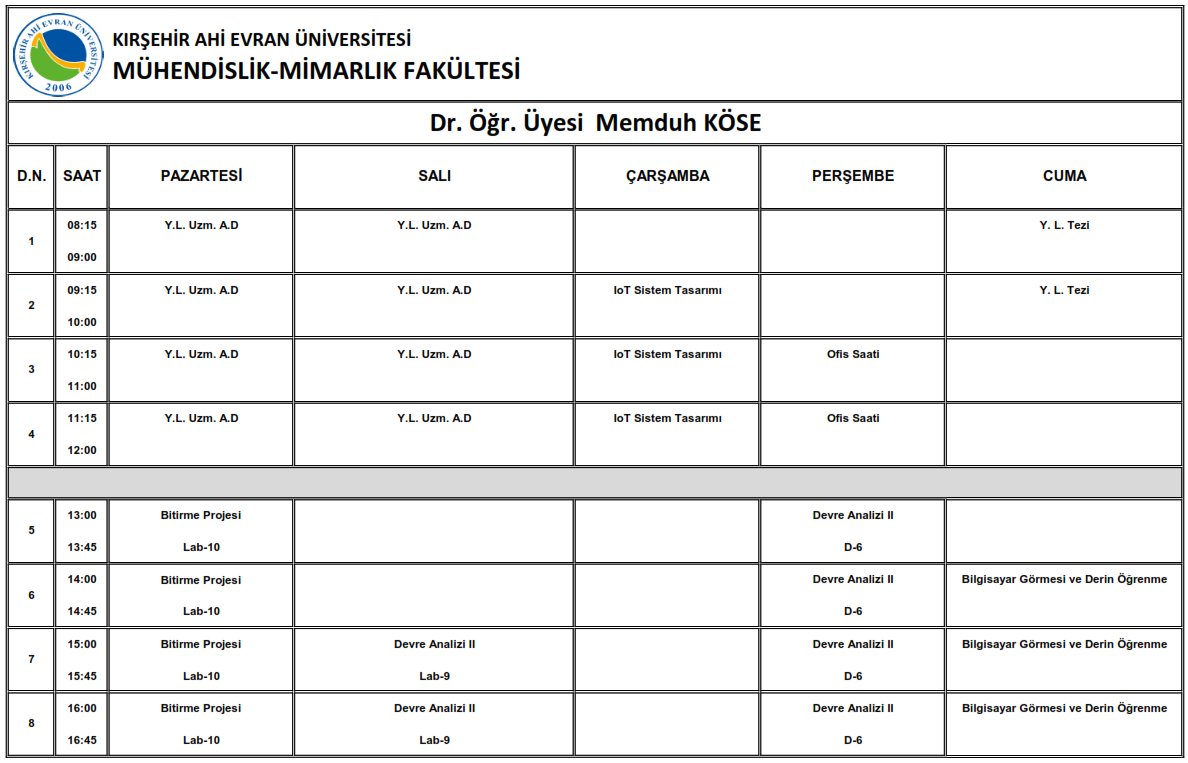 2. 2024-2025 BAHAR DERS PROGRAMI (Diğer)